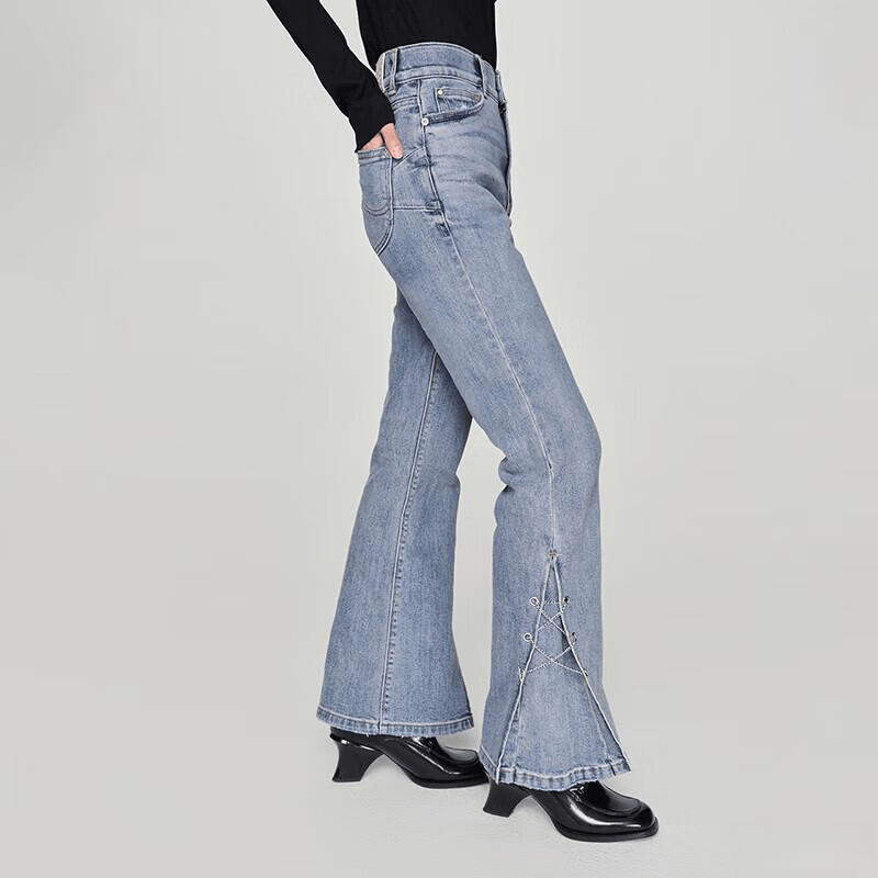 在日常穿搭中,牛仔裤无疑是每个女人衣橱里的必备单品。它不只是根底款,更是展示自傲与气质的要害。每逢咱们站在衣柜前优柔寡断时,一条适宜的牛仔裤总能让咱们瞬间安心。今日,咱们将为我们引荐一款来自Lee的美颜牛仔427高腰喇叭裤,凭仗其经典的取舍和细节规划,成为了很多时尚女人的抱负挑选。那么,这款牛仔裤的版型是不是真的如口碑所说般优异?上身作用终究怎么?让咱们一起揭开这条牛仔裤的线. 品牌与系列认知